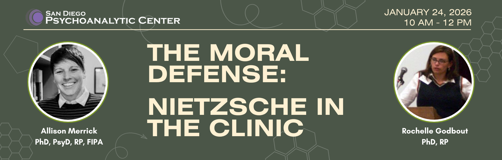 In this presentation, we will focus on one of Nietzsche’s most clinically resonant observations: that morality is often deployed as a psychological defense, protecting against intolerable affect such as shame and helplessness. Drawing on personal narrative and selections from her own research, Merrick will outline two common defensive structures rooted in moralization.