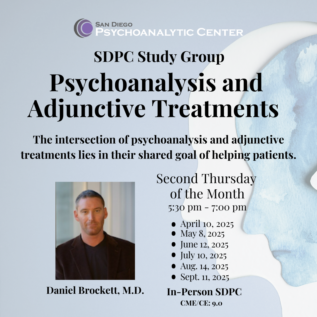 AMA Credit Designation Statement: The San Diego Psychoanalytic Center designates this Continuing Education activity for a maximum of 9 hours AMA PRA Category 1 Credit(s)™️. Physicians should claim only the credit commensurate with the extent of their participation in the activity.