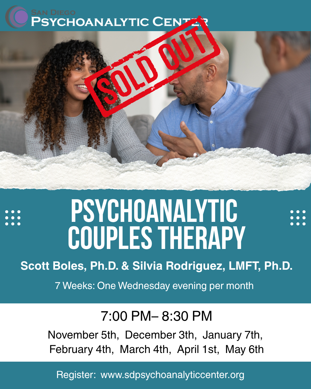 SDPC's fall training program is now in session. If you are interested in applying for a future session, please reach out to our Admissions Director at: admissions@sdpsychoanalytic.org.