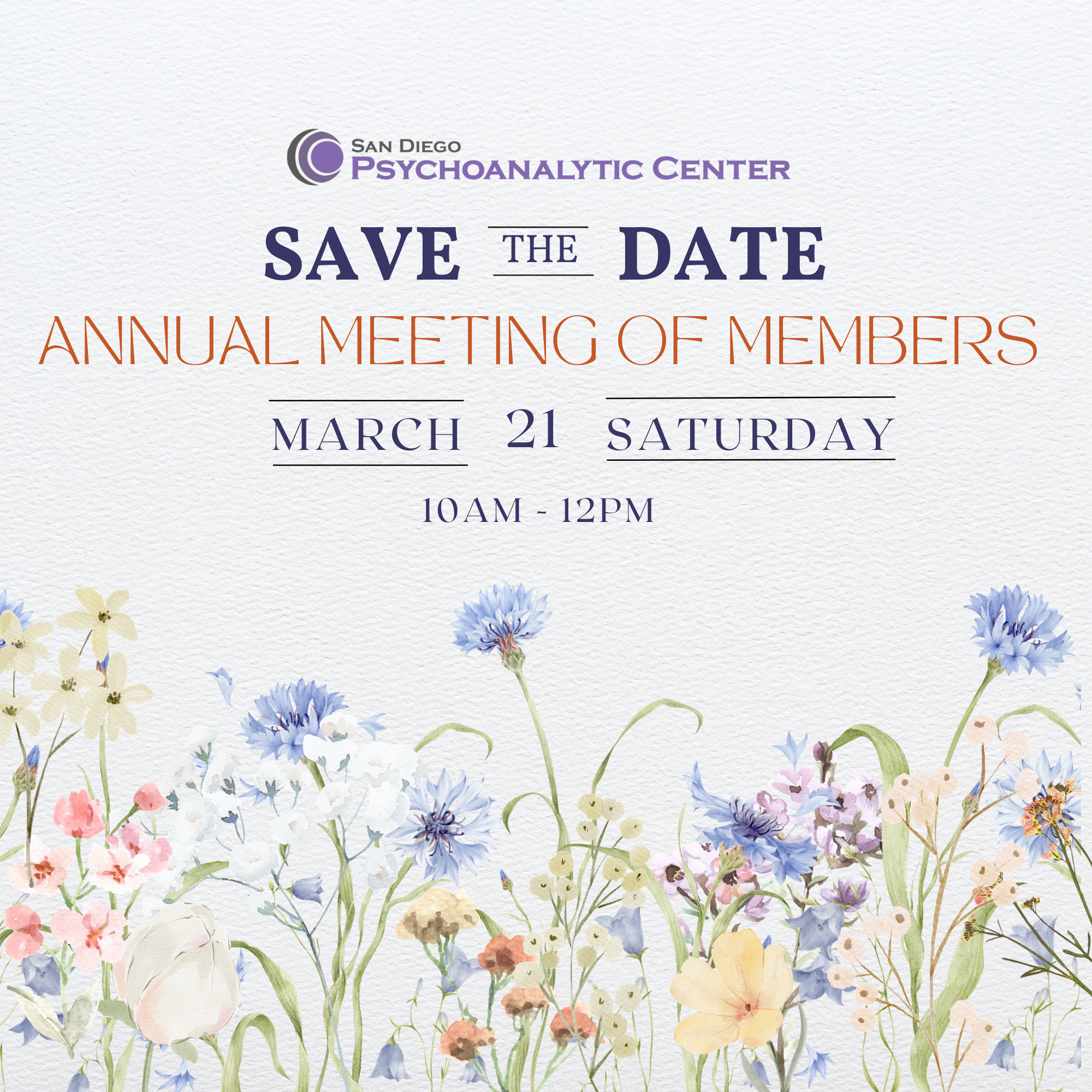 SDPC is pleased to invite you to the 2026 Annual Meeting of Members on Saturday, March 21, 2026 from 10:00 AM to 12:00 PM. This gathering will be a valuable opportunity for members to reconnect, share professional insights, and reflect on what makes SDPC meaningful to all of us. All SDPC dues-paying members are encouraged to attend.